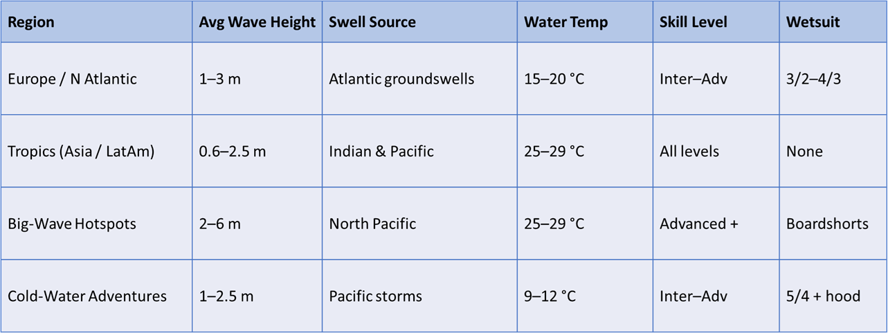 גובה גלים ממוצע: 1.5–3 מטר (5–10 רגל) | סוואלים: פריוד גבוה מהאוקיינוס האטלנטי הצפוני